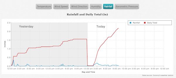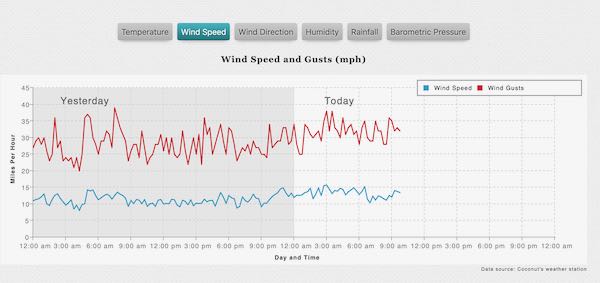 This is a website created by the owners of Coconuts villa on Gifft Hill. It shows information compiled from its weather station including temperatures, rainfall, winds, wind gusts and more. You can find it online at www.weather.vi.