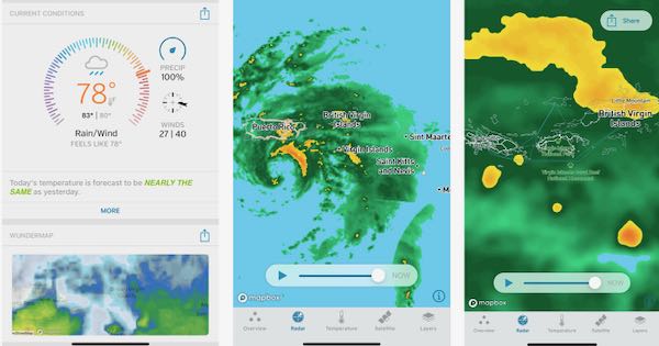 This is another great app, which is also located on the web at www.windy.com. It’s pretty self explanatory – it shows us how windy it is in a particular place. But it also shows radar, thunder, temperature, clouds, rainfall amounts, wind gusts and more. All you have to do is drop a pin on the area that you are interested in to see information on that spot. You can also use the app to check out the weather for several days in advance.