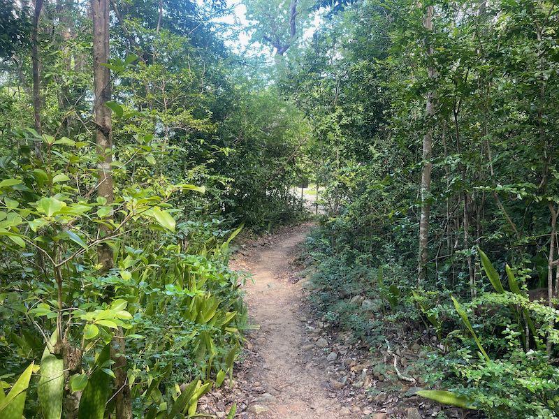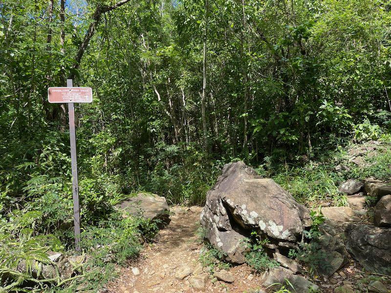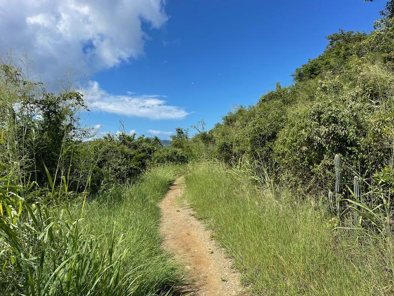 The Lind Point trail starts just behind the National Park’s visitor center in Cruz Bay. If you are not familiar with that building, it is the large yellow building that is located next to the creek and across the street and down a little from Mongoose Junction. Walk behind the visitor center, and you will see a set of stairs. That is where the hike begins.