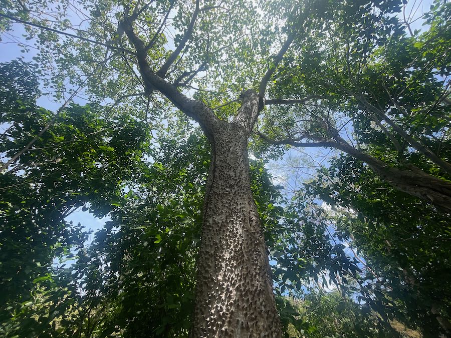 A sandbox, or Monkey No Climb, tree at Annaberg.