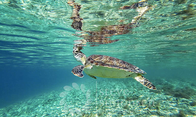 Not on island for that long? You can still help protect our turtles! If you see a turtle, please do not touch them and stay at least six feet away from them when snorkeling. Please report any signs of nesting activity to the Virgin Islands National Park. Always use reef-safe sunscreen. And please throw away all trash, particularly single-use plastics like bags and straws.
