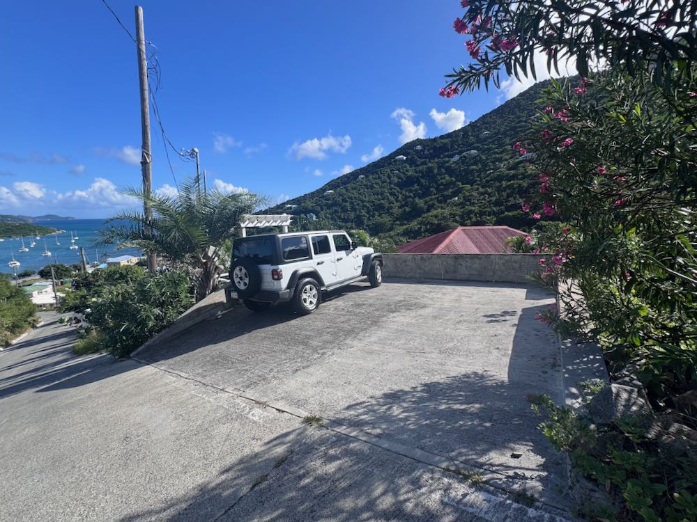 Island Cottage is located near the bottom of Route 108 in Coral Bay. No super scary steep roads here! For those of you who like to walk places, you can easily walk down the paved hill to Johnny Lime, Surf Club Cantina, Sharky’s, Jolly Dog and Zemi. Island Cottage features a flat parking pad with room to accommodate two vehicles.