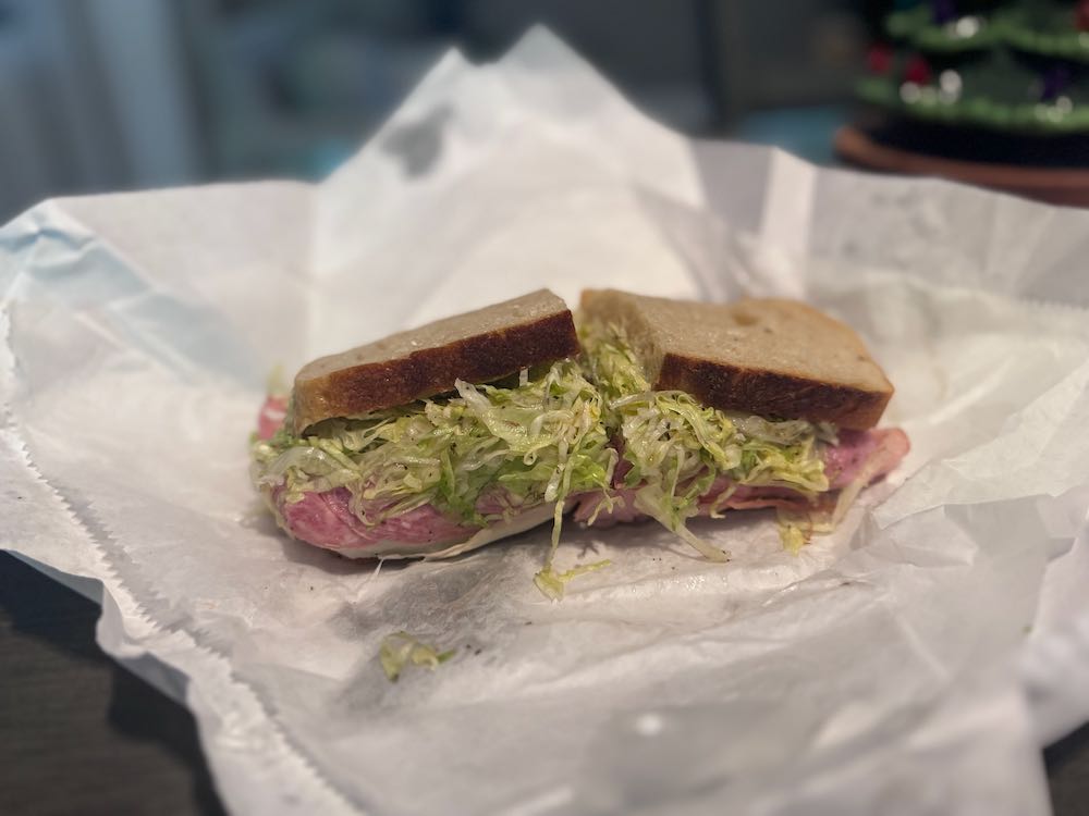 I stopped by late yesterday afternoon to grab a quick bite. I arrived about 30 minutes after the last sub roll was sold, so I opted for sourdough bread. There were a lot of options, including an Italian and roast beef, which Paul makes himself. I chose a ham, salami and provolone sandwich, and it did not disappoint!