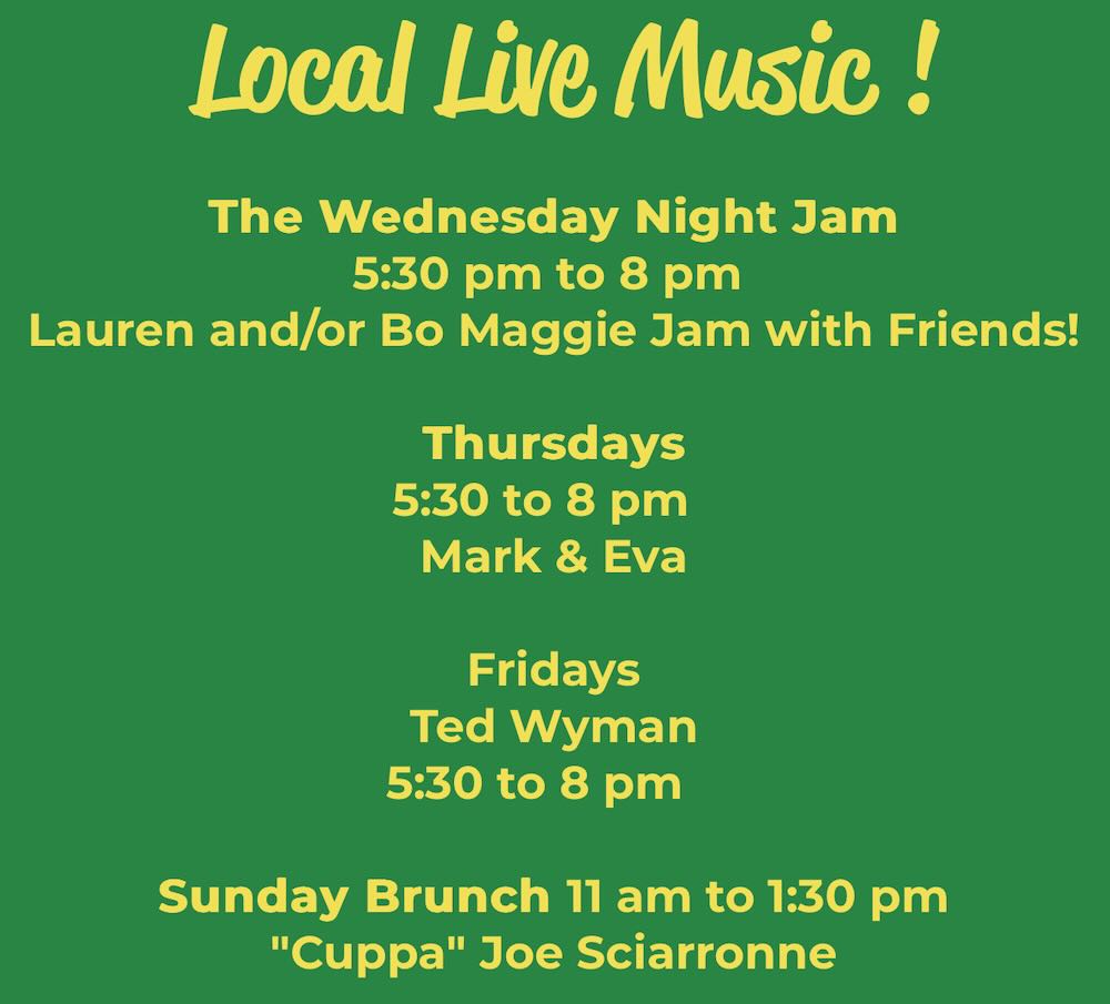 Sun Dog Cafe has live music several days a week too. Check out their schedule: