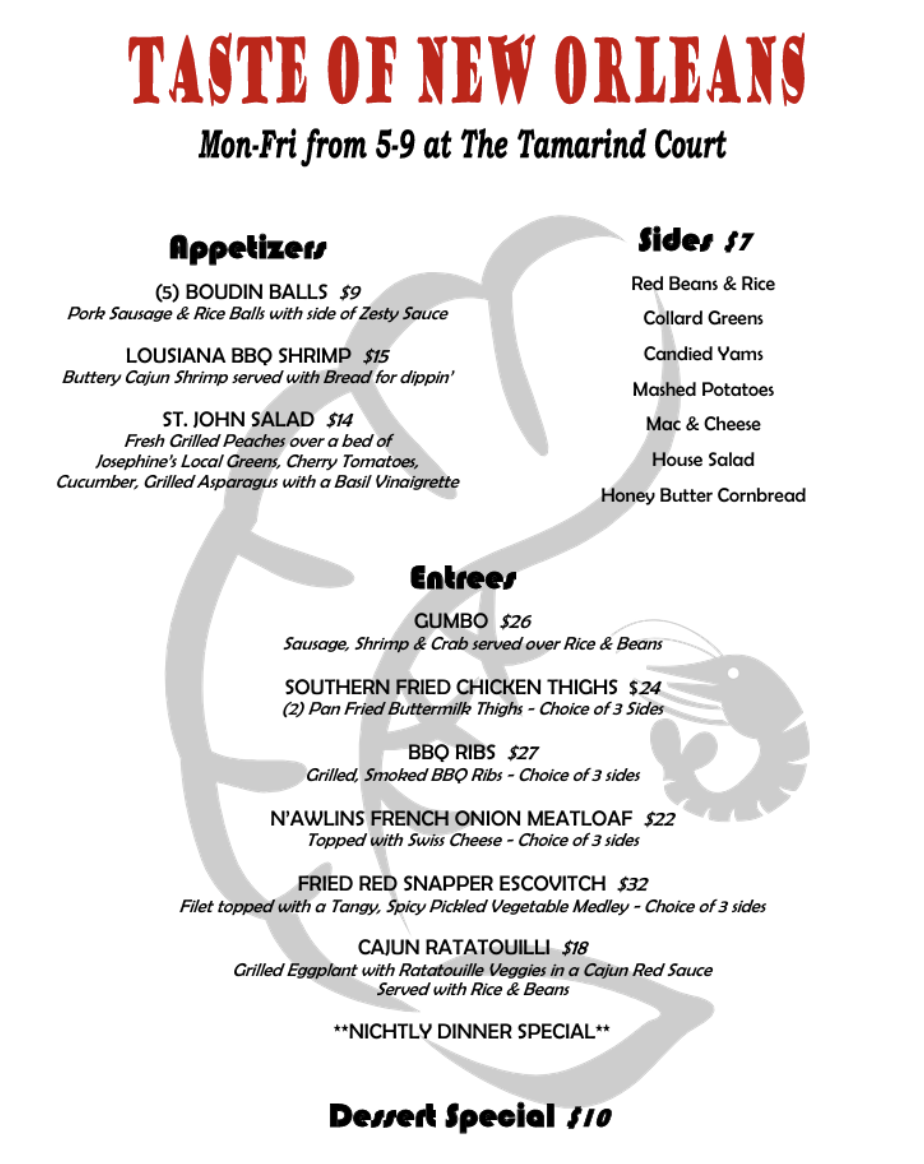 Looking for a new place to grab dinner when you’re visiting St. John? Well if you like spice and Cajun cooking, you’re going to want to check out the new Cajun-style menu over at the Inn at Tamarind Court.