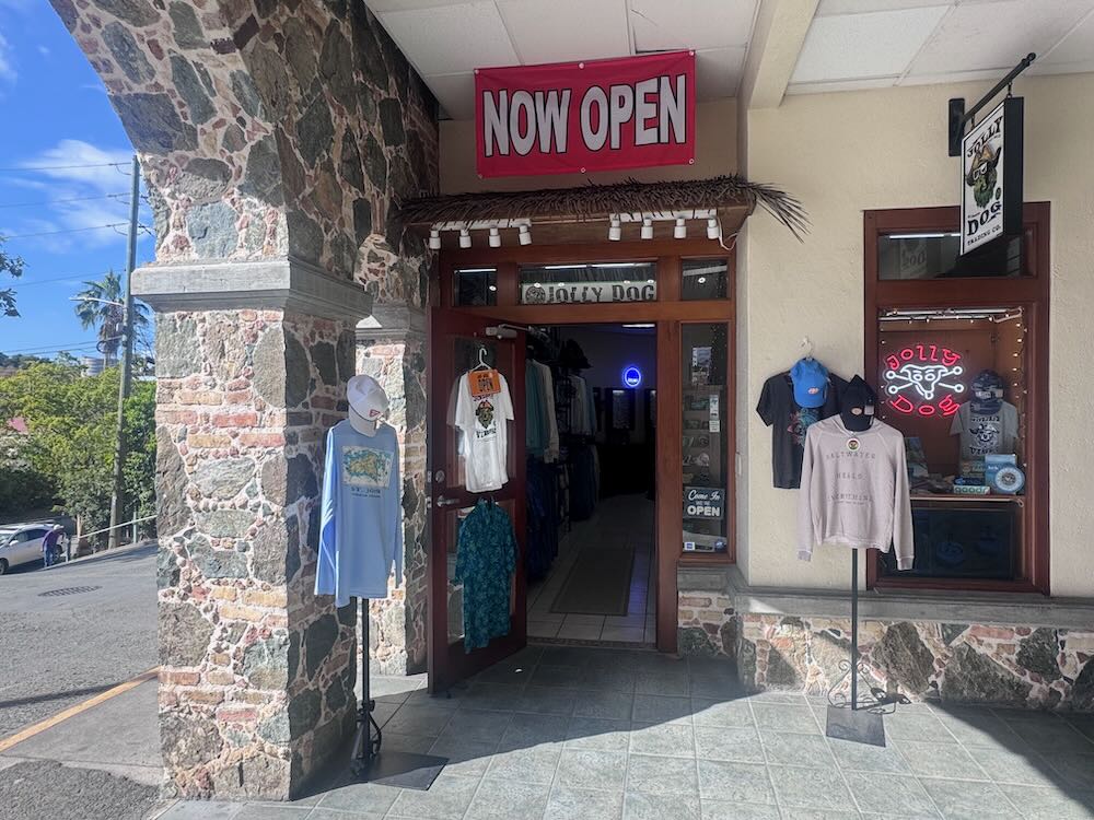 Jolly Dog, Coral Bay’s popular clothing and souvenir shop, now has a new location in Cruz Bay!