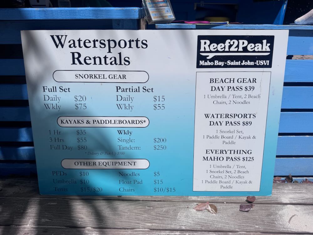There are still Watersports rentals onsite courtesy of Reef2Peak.