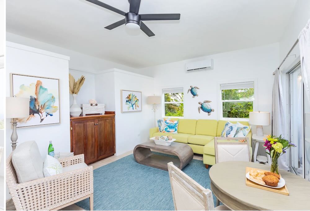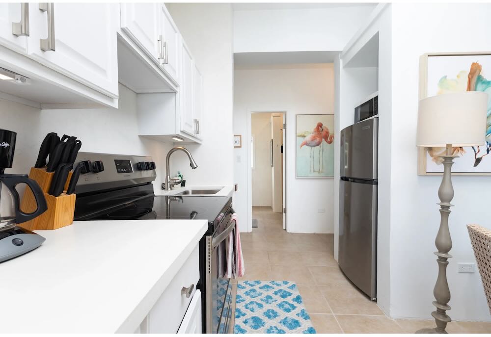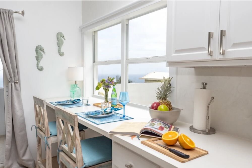 Sunset Dream is a spacious, one-bedroom with southerly views of the Caribbean Sea. Sunset Dream has a king-sized bed, brand new furnishings, appliances and decor. It even has a washer and dryer, so there is less packing for you to do! It has a great balcony area too, where you can enjoy beautiful views and sunsets, and perhaps even a late afternoon cocktail while sitting at the brand new hightop bar. Check it out!