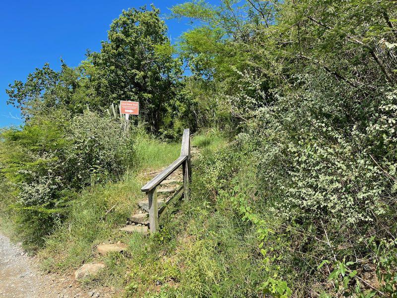 The trail begins behind the National Park’s visitor center in Cruz Bay.Walk up these stairs, take a left and then a right to begin the Lind Point trail.