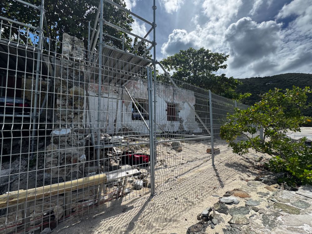I walked down to Cinnamon Bay Monday morning, and I was surprised to see that the old Danish warehouse was fenced off. I walked a little closer, and I learned that the building – one of the oldest Danish buildings on St. John – is undergoing historic preservation.