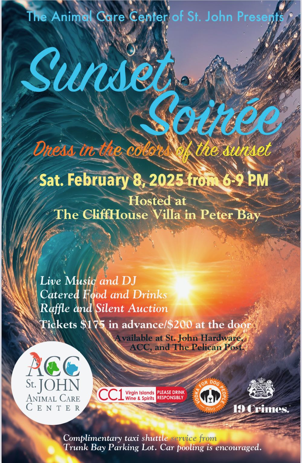 The Animal Care Center’s annual gala is scheduled for Saturday, February 8th. This is our largest fundraising event of the year. This event allows us to take care of hundreds of cats and dogs that come into the shelter each year. It allows us to board them, feed them, provide medical care, and, most importantly, spay and neuter them. Have you ever noticed that St. John does not have any stray dogs unlike many other Caribbean islands? Well, that’s thanks to the Animal Care Center and all of its hard work.