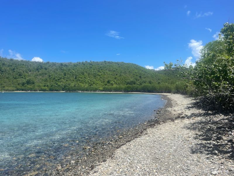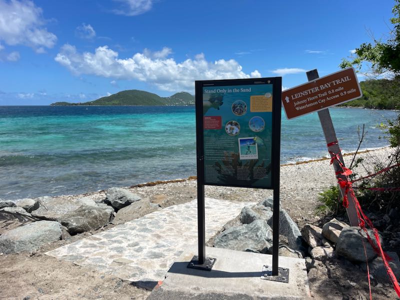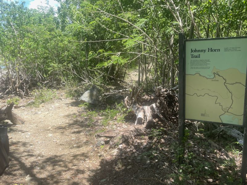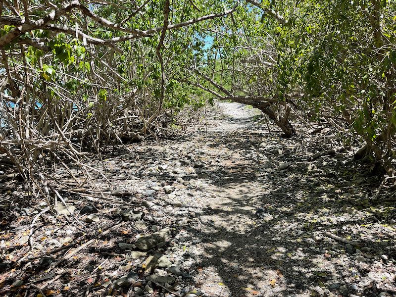 To take this hike, you’ll want to park in the small lot below the Annaberg plantation. Then walk toward the water where you will see a sign for the Leinster Bay Trail. Follow the rocky path along the shoreline and through the mangroves. After about 15 to 20 minutes, you will arrive at the beach at Waterlemon Bay.
