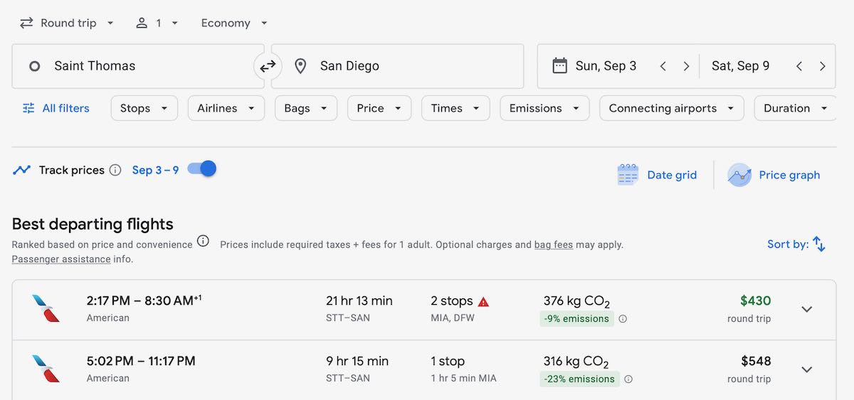JFK is historically one of the cheapest markets when flying to St. Thomas. I’m planning on visiting my family in Connecticut soon, so I have been perusing flights myself. A one-way ticket on Delta into Hartford was $941 one way, which is insane. I can fly into JFK that same day, also on Delta, for just $241. That’s a huge difference and worth the extra hour-and-a-half drive. So for those of you reading who are within a few hours of JFK airport, consider driving there, rather than leaving out of Boston, which is always more expensive. I’m sure this holds true for several other airports around the country.