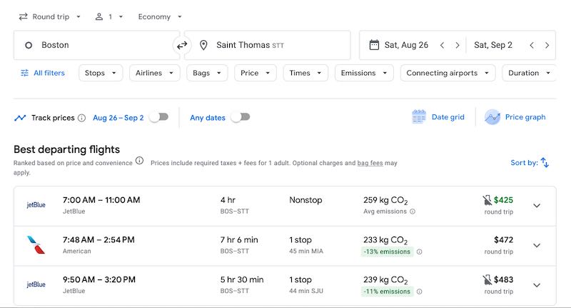Boston – You can visit us during the quietest time of the year, just please buy travel insurance. You can fly for just $425 round trip with travel dates of August 26th through September 2nd. The flight is nonstop flying down, and there is a quick layover in Puerto Rico on the way home.